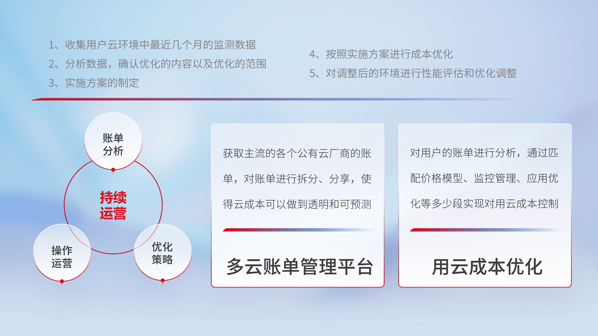 监控业务系统资源开销,,,对资源的消耗精确计量,,,实现费用的透明化管理,,,,不断提升资源使用率,,调整资源购买方式,,,,降低资源费用成本,,,用云成本可预测、、、、用云费用可优化,,云资源配额有据可依。。。